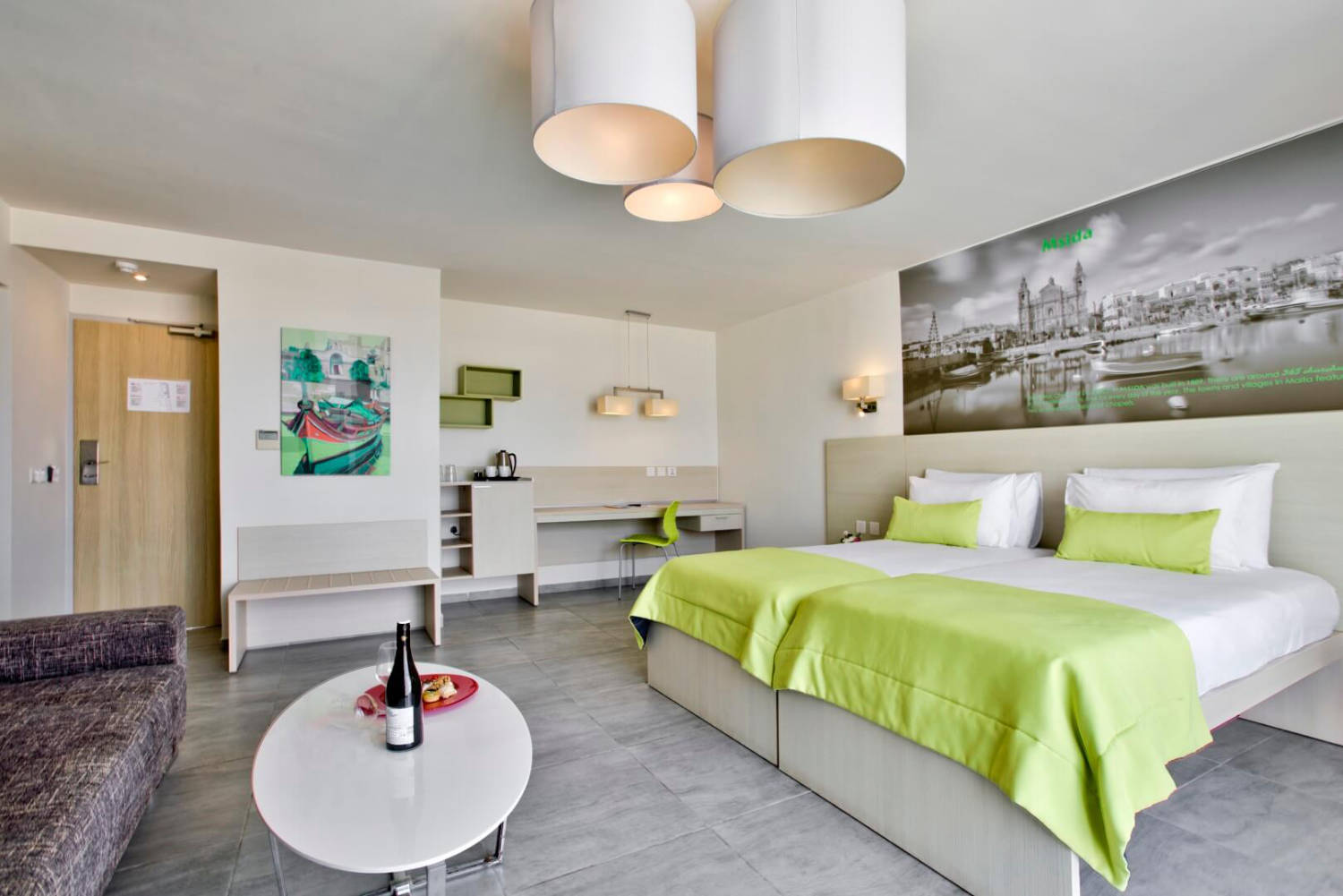 Similarly, to other rooms types, these rooms are freshly decorated with modern colours, for our guests to experience the Mediterranean ambience throughout their stay.