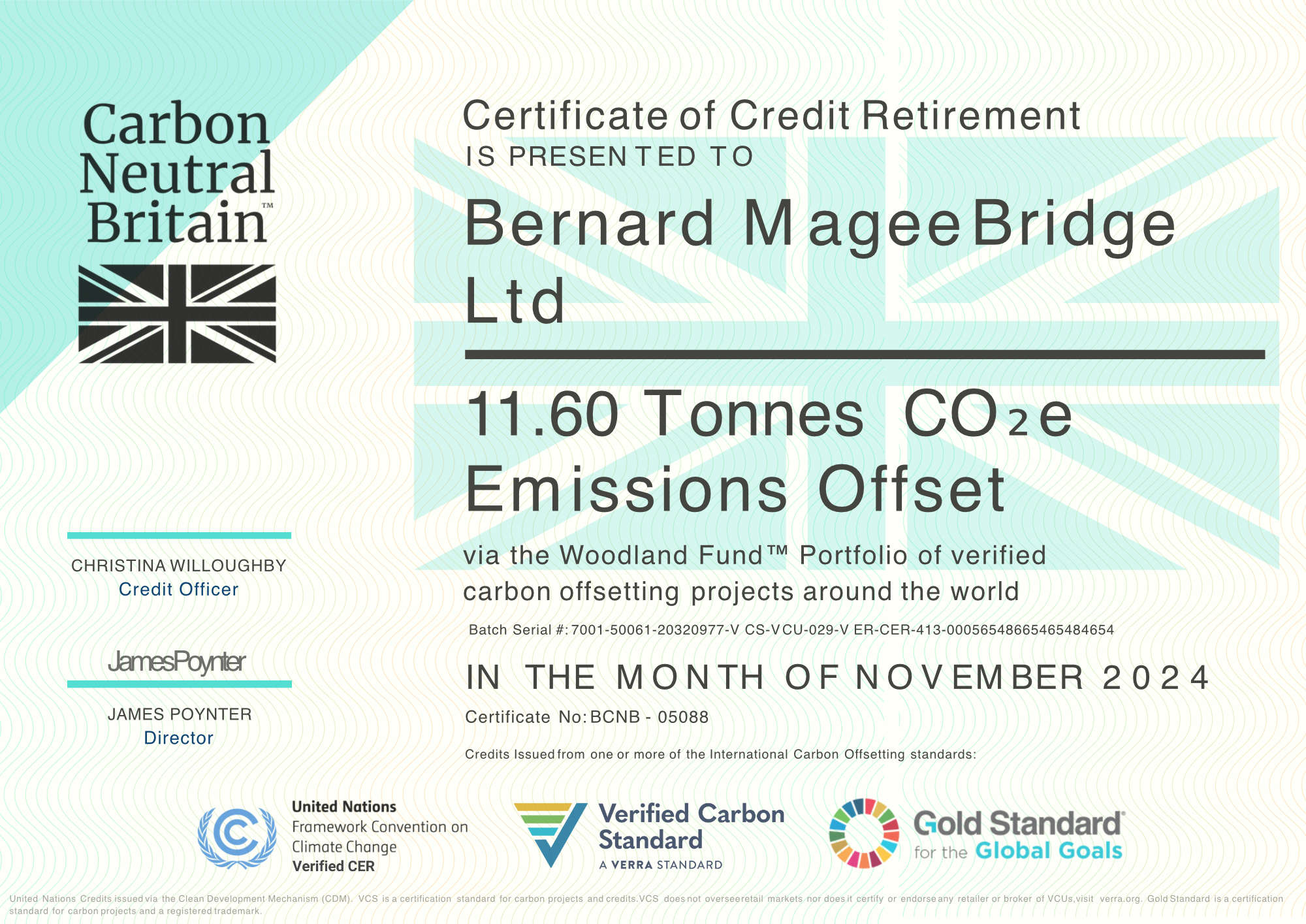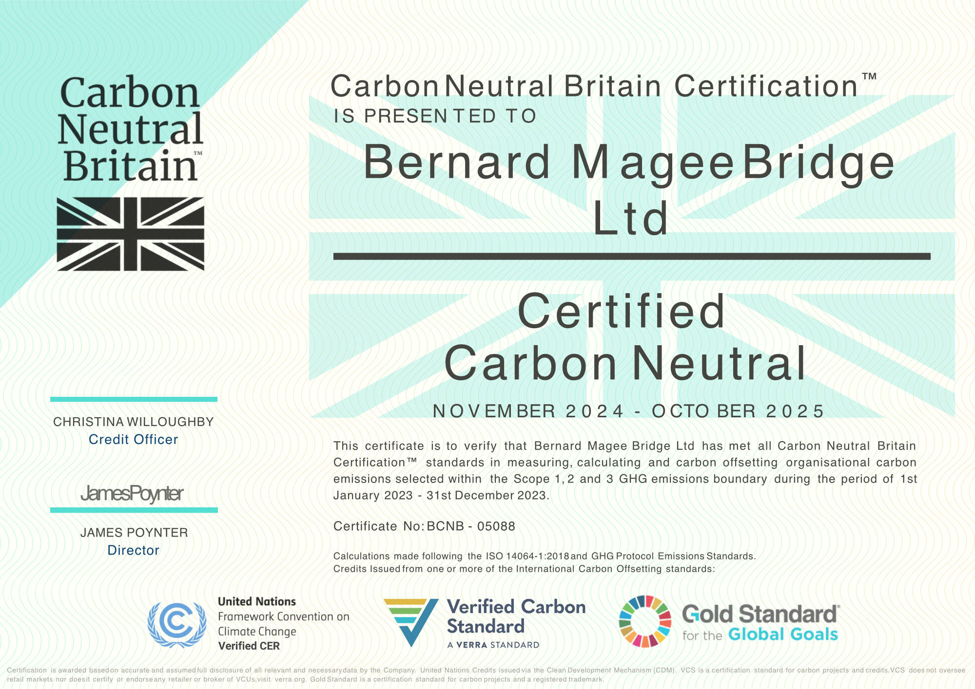 We have teamed up with Carbon Neutral Britain to offset our Carbon Footprint for 2023, and we are delighted to announce that as of November 2024 we are a certified Carbon Neutral Business!